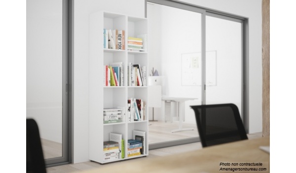 Système modulaire d'armoires bois en mélaminé, différents coloris assorties aux teintes des bureaux. Existent sans portes, avec portes battantes bois en bas et bibliothèque en haut, avec portes battantes bois en bas et portes verres en haut,avec portes battantes uniquement.