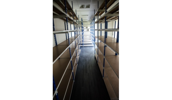 Rayonnages grande profondeur pour containers à archives adaptés au local.