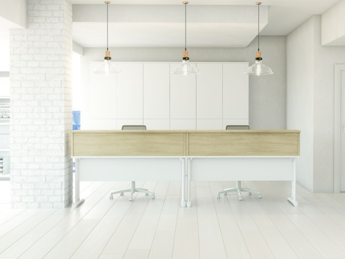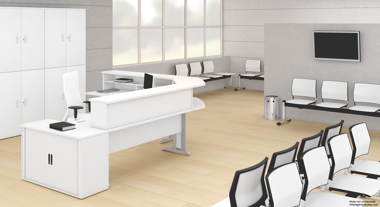Simple, économique et ingénieuse : la réhausse transformant un bureau en accueil.